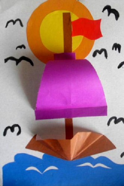Можете да направите татко обемна пощенска картичка със собствените си ръце, например с кораб с изпъкнал плат.