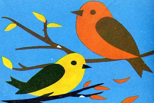 Приложение от цветна хартия на тема "Птици"