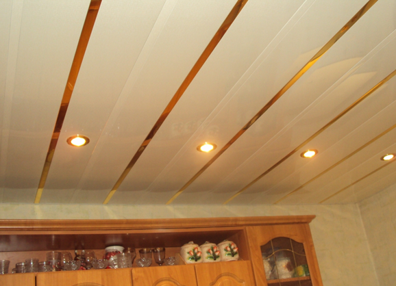 Дизайнът на пластмасовия таван в кухнята може да бъде много различен. Възможно е да се използват различни нюанси и модели, които да са в хармония с цвета и текстурата на фасадите на кухнята.