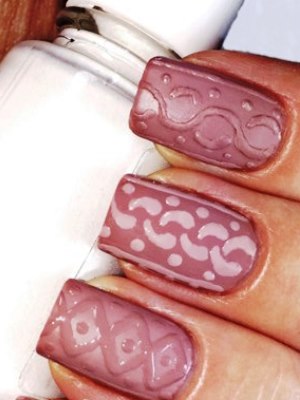 Такъв дизайн на ноктите, като плетене или пуловер, за самостоятелно изпълнение е изключително трудно. Ако темата за свързването на отворената работа много харесва, а възможността да се сбъдне една мечта, струва си да се прибегне до плъзгачите. Това са специални етикети на водна основа, които се нанасят върху ноктите. Изберете плъзгачи с изображения на фрагменти от чифтосване, както и стикери с рисунки, съответстващи на зимния сезон - снежинки, елен, скандинавски печат. Този дизайн е много прост. Най-напред ноктите са покрити с лак на фона. След това плъзгачите се спускат за няколко секунди във водата, така че основата на стикера се отлепва и се нанася върху ноктите. Моделът остава върху ноктите и остава само да се покрият с прозрачен фиксатор. Основен недостатък на този маникюр е, че той се получава като неотстраним.