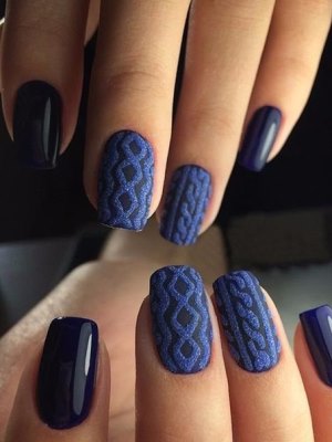 Ефектът на пуловер върху ноктите изглежда перфектно през зимата. Този дизайн ви кара да се чувствате по-комфортно в студеното време, защото се чувствате като топлина и уют у дома. Моделът на ноктите, напомнящ за пуловер, изглежда обем, като се рисува модел в няколко слоя на плосък фон. Според много момичета, този маникюр изглежда най-добре върху ноктите за нокти със средна дължина. Що се отнася до формата, тя може да бъде бадемова, овална или квадратна.