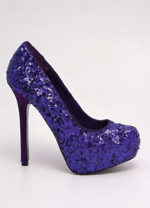 Във виолетовите обувки с високи токчета има един важен детайл - това е самата пета, която днес се откроява по всякакъв начин, а след това и декора. Например, пайети или дори шипове, украсяващи петата, носят бележка за театралност, която е подходяща за партита.