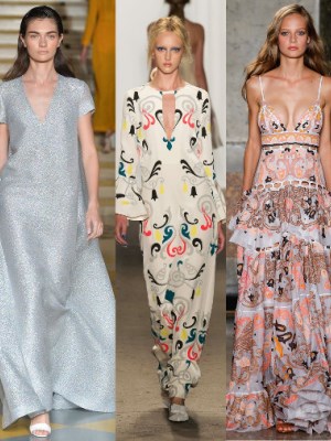 Ако панталоните могат да се носят от мъжете, носенето на рокля е изключителната прерогатива на жените. С всички тези модерни стилове на рокли през 2015 г. са предназначени да привличат вниманието на мъжете. В тенденцията на женственост и елегантност , така безформените скучни екипировки трябва да бъдат окончателно премахнати от гардероба. Най-модерните женски рокли през 2015 г. са романтични, а техният рязан, предимно класически. Елегантните модели с дължина на пода, украсени с високи разфасовки отстрани или отзад, както и рокли с нагъната плисирана пола, са подходящи за жени на всяка възраст. Тези рокли са избрани за създаване на ваканционни снимки. Ако да отбележим модерните тенденции за 2015 дълги дълги вечерни рокли - извън конкуренцията. Те дават на собствениците си чувство за превъзходство, защото е толкова лесно да се чувствате като кралицата на вечерта, ако имате елегантно облекло, което подчертава красотата на фигурата. Гръцките рокли, изработени от леки въздушни платове, все още заемат позициите си. Костюмът в тези рокли е декориран с дебели пердета или разпръснати от пенливи камъни. Действителни и модели с пола година, и модерен в последния сезон рокли-риби напускат в миналото. Идеалният материал за шиене на вечерни рокли е коприна, шифон, гапура, сатен, а като декорация изглеждат страхотни дантели, органза и дори естествена кожа. Модните дизайнери предпочитат модели с отворен връх, но ако ръцете са проблемна зона, струва си да добавите рокля с бюро или елегантно болеро.