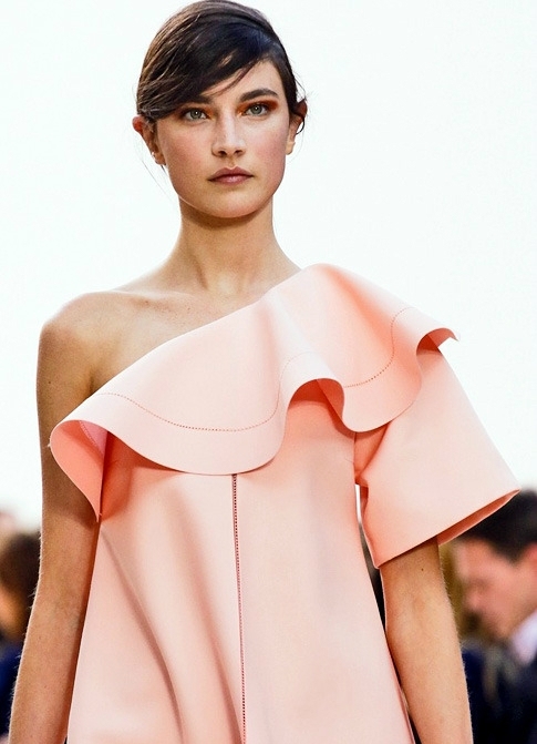 Ланвин предложи роклята с фланелки и къдрици в кръста, с къдрици на малки извити или тесни поли на колене. Друга ярка детайлност на новата колекция е мини-рокля с два тона цвят. В горната част на модела има бели плисета, а дъното е представено под формата на тесен пола. Фланешките на такава рокля напомнят малко напоена със сметана сметана.