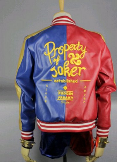 Като материал за направа на якета Харли Куин, като правило, използва блестяща преливаща се тъкан. Също така на сакото има златна лента, която показва как Харли обича всичко блестящо.