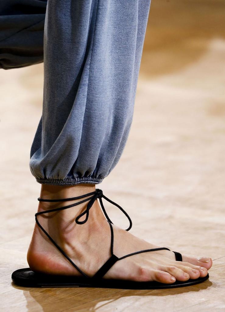 - Панделки . Сандалите-гладиатори отново са на висотата на популярността. Почти всички дизайнери представиха обувките си в новия сезон в своите предавания! От което спокойно може да се каже, че това са най-модерните сандали за лятото на 2015 г. Лентите се намират в леки версии на лодки и балетни обувки, остават в областта на глезена или се увиват около крака до коляното. Пастел преобладава, което повечето момичета само на ръка - тя няма да визуално съкрати крака, като модел с тъмни панделки.