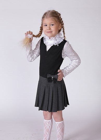 - сив сарафан за училището е в съвършена хармония със същите бели, розови, бургундски, сини, бежови, светло зелени;