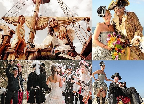 Сватбата в стила на пиратите предвижда задължителна подготовка на мястото. За да дадете на гостите незабравимо преживяване, най-добре е да наемете пиратски кораб. За малък брой гости ще е достатъчно за малка лодка, проектирана по съответния начин. Основното, което всички почувстваха вкуса на морето, разтърсиха вълните и се чувстваха като част от истинска заплашителна пиратска банда.