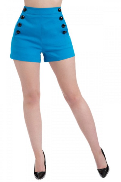 Когато решавате какво да носите със сини къси панталони на почивка, най-добре е да се обърнете към морския стил. Наситеният нюанс на синьото е много подходящ за традиционно трио с червени и бели цветове. Сините къси панталони също ще изглеждат с леки лопатари или еспадрили на почивка и класически лодки или клин в града.