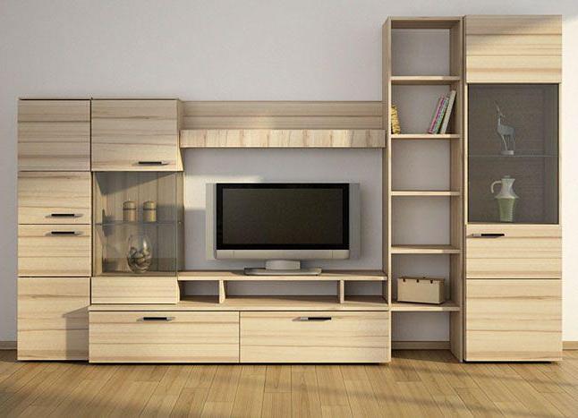 Кабината в хола в модерен стил с голям брой чекмеджета и рафтове, както и място за инсталиране на телевизор или стерео система е отлично решение за интериора на малките и много просторни стаи. Съчетавайки удобството и красивия модерен дизайн, тези слайдове са спечелили любовта на потребителите и сега те могат да бъдат намерени в почти всеки дом.