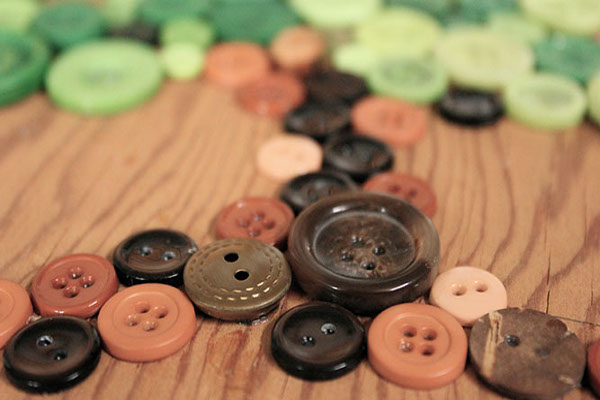 - Вторият етап от майсторския клас за създаване на картина на бутоните е запълването на фона. Първо поставяме бутони с по-голям размер.