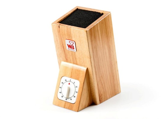 По-познат модел - стойка с канали, където вертикално се поставя всеки нож отделно. Стабилна основа, солидна външност - всичко това е типично за дървена стойка за ножове. Такова аксесоар лесно се вписва във всеки дизайн и изглежда впечатляващо.