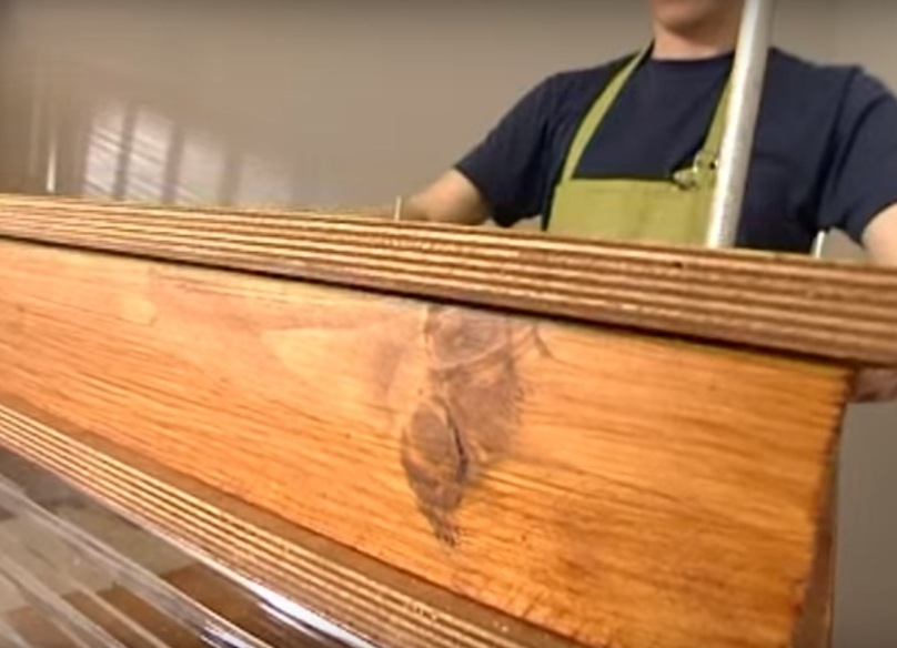 - Когато дървото е изсъхнало, ходете по него с шкурка, след което нанесете втория слой петно. Ще получите еднаква гладка повърхност.