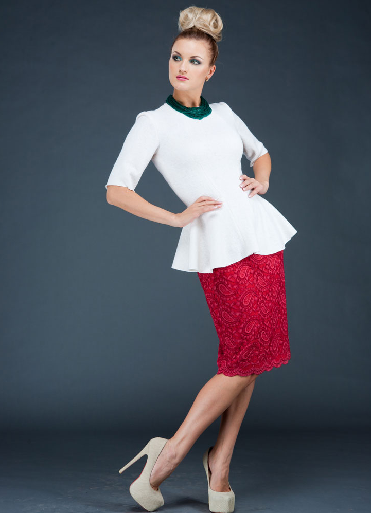 Ако преди моделът на дантела в комплекта беше строго яке, но днес можете да намерите абсолютно необичайни опции. Застъпвайки се да комбинират неприлични дизайнери, предлагат да носят дантели с кожени и деним якета. Изборът на това, какво да се носят с дантела пола зависи от стила. Една класическа лигавица с молив, съчетана със стройна блуза или елегантно яке, ще служи като отличен комплект за офиса. В комбинация с обемна пуловер се получава не по-малко интересен вариант.
