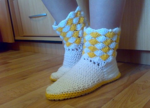 Последните няколко сезона през пролетта, лятото и есента по улиците често могат да се видят момичета в плетени ботуши, които неизменно привличат вниманието. Това може да бъде като отворени плетени ботуши, както и модели на плътно плетиво за сухо, но хладно време. Също така интересни са например плетените ботуши, направени от мотиви, свързани помежду си. Като цяло има разнообразие от най-разнообразни модели, сред които има и трикотажни ботуши за къщата. Наистина, когато улицата е мокра или всичко е покрито със сняг, не можете да излизате на улицата с плетени ботуши, но да затоплите краката на къщата в тях е отличен изход от ситуацията.