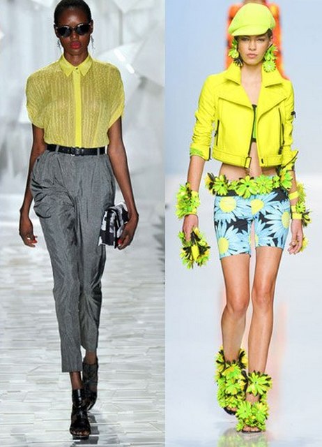 Тези необичайно ярки цветови решения са продиктувани от усещанията на южния бриз, богатата зеленина на тропиците и топлината на слънчевите лъчи. Но не бързайте да носите дрехи от всички модни нюанси наведнъж - ще изглеждате като светофар. Неонови цветове са толкова силни, че всички останали елементи на гардероба и аксесоарите трябва да бъдат заглушени, спокойни - сиви, черни, бели.
