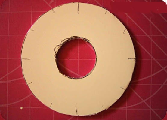 - Начертайте върху избрания материал кръга от радиуса, от който се нуждаем.