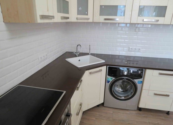 Много удобно е да комбинирате ъглов шкаф с мивка . В апартаментите от съветската епоха мрежата за водоснабдяване е разположена в ъгъла. За да не се притеснявате с удължаването на тръбите, можете просто да монтирате мивката в същия ъгъл. По-добре е да се откаже от системата "карусел", за да не се повреди комуникацията.
