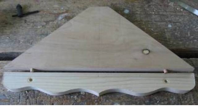 - Изрежете основните части на рафта: от дъската трябва да изрежете ъгъла, а също и предната лента - корнизът.