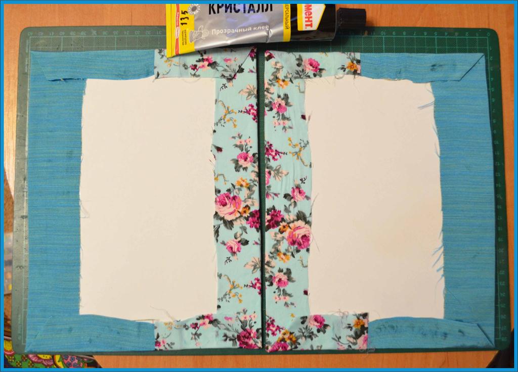 - И тогава, с помощта на лепило, ние фиксираме тъканта на основата, като леко огъваме ъглите.